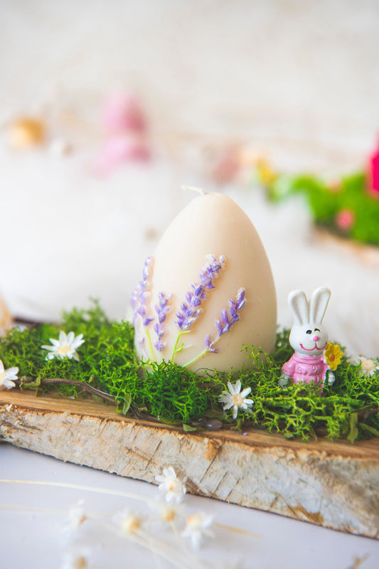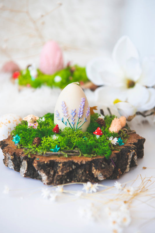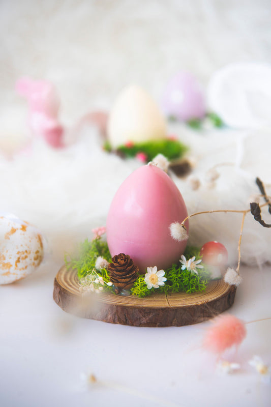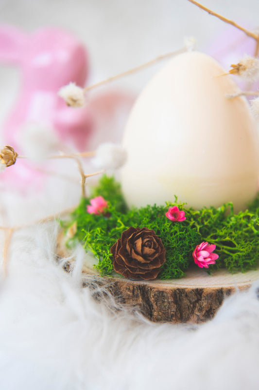 Aranjament de Paste cu licheni stabilizati si lumanare parfumata in forma de ou