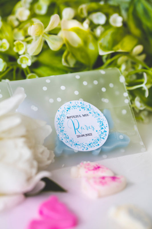 Marturii botez personalizate - picioruse albastre de ceara parfumata