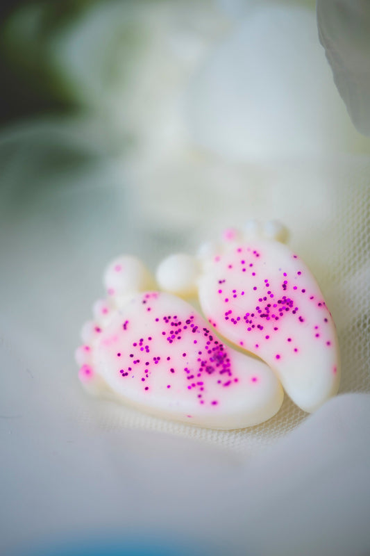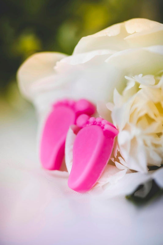 Marturii botez personalizate - picioruse de ceara parfumata cu sclipici roz
