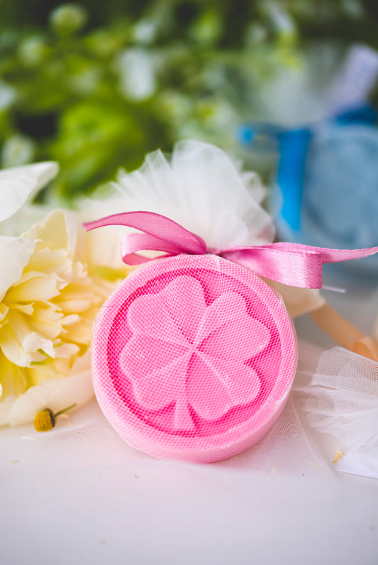 Marturii botez - tableta de ceara parfumata cu trifoi roz